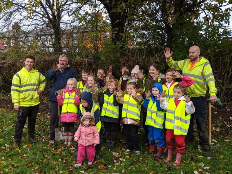 Barnsley Council also secured some free trees from Octopus Energy who arranged for Chris Collins the Blue Peter gardener to help the children plant the whips and nurture them until the autumn when they were planted along side the extra heavy standards planted to create the woodland area.