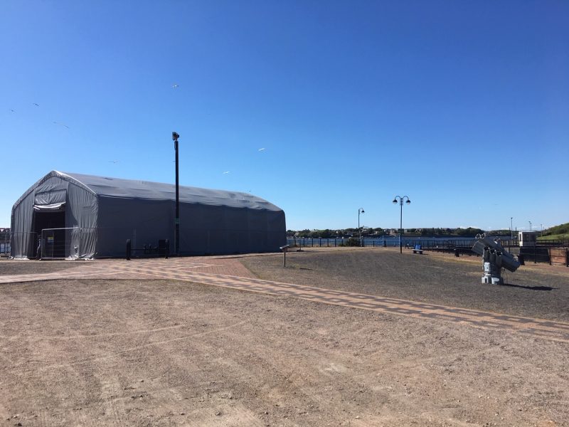 The iconic life boat has been surrounded by a huge metal framed tent to allow the boat to dry out so that conservation work can begin.