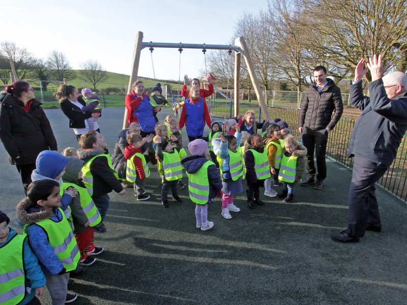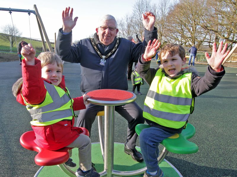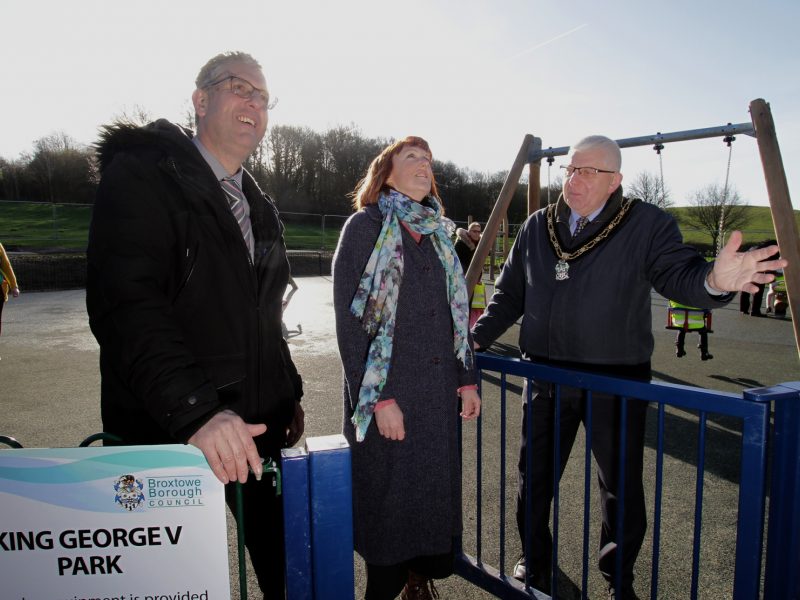 Mayor of Broxtowe, Councillor Michael Brown joined children from The Village Nursery to test out the new play equipment and fitness areas, which features a fenced area for the under 9’s and items in the open grass for older children.