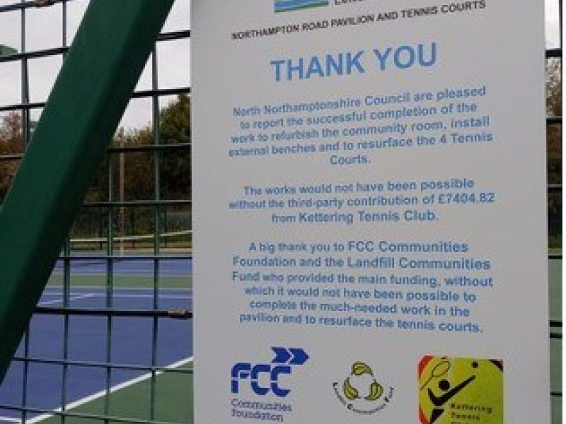 The money, was used to resurface the four outdoor tennis courts, provide outdoor seating and refurbish the community room within the pavilion in Kettering. The project would not have been possible without the third-party contribution of £7,404.82 from Kettering Tennis Clubs own funds.
